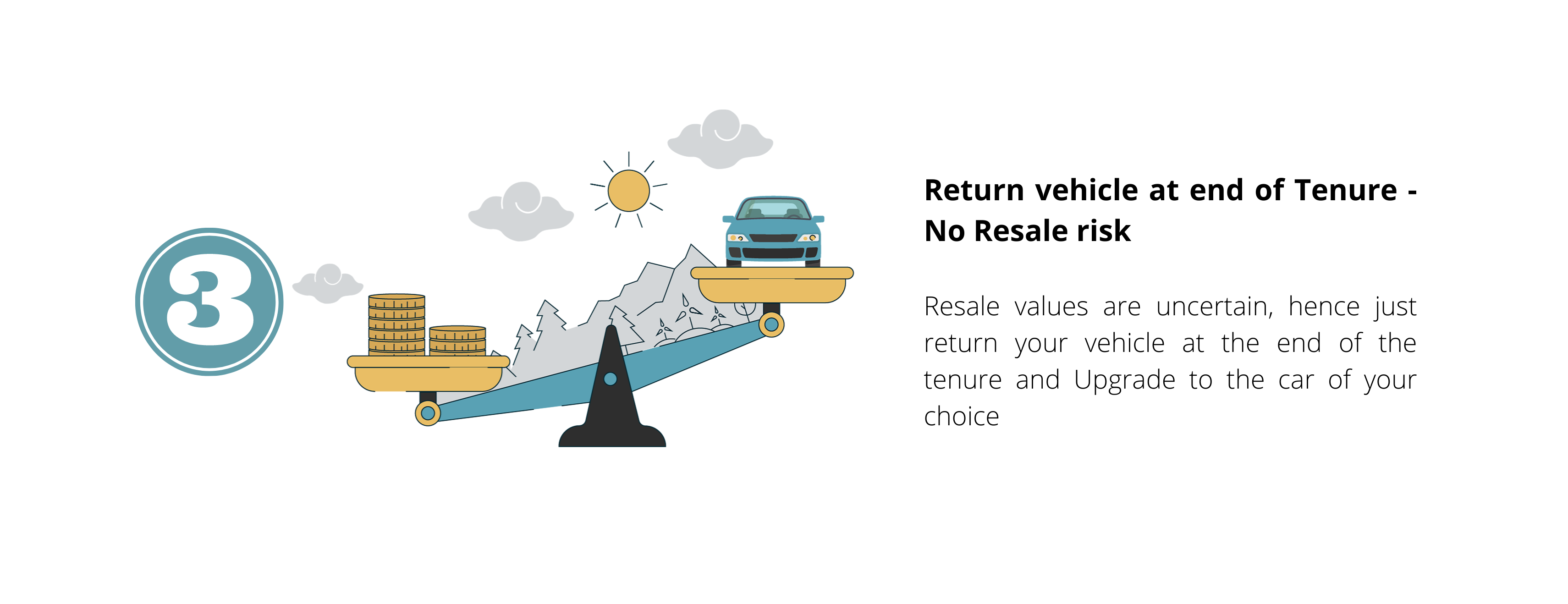 Resale values are uncertain in today's times, hence return your car at the end of the tenure to KINTO and we take the resale risk.