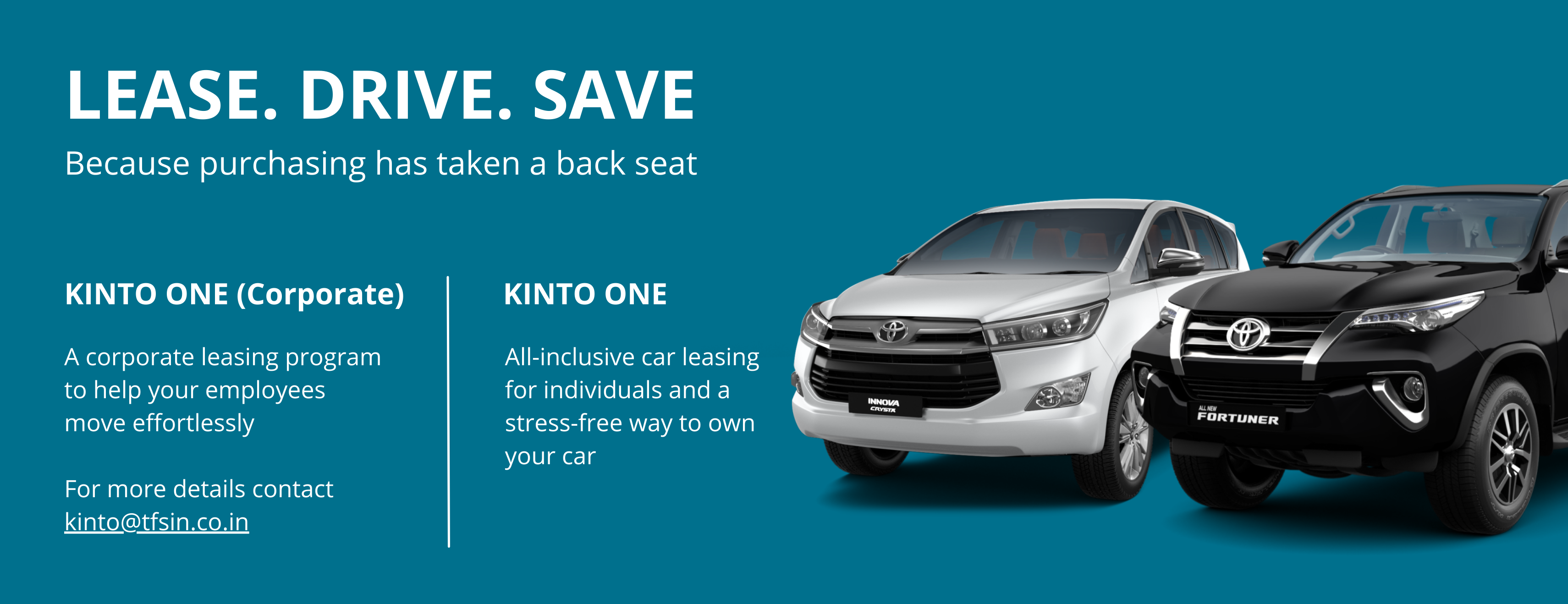 Just 2 months Security deposit and a Single fixed monthly rental for the full tenure. At the end just return the car to KINTO. The lease rentals paid qualifies for Incometax benefits. Best suited for Selfemployed & professionals.